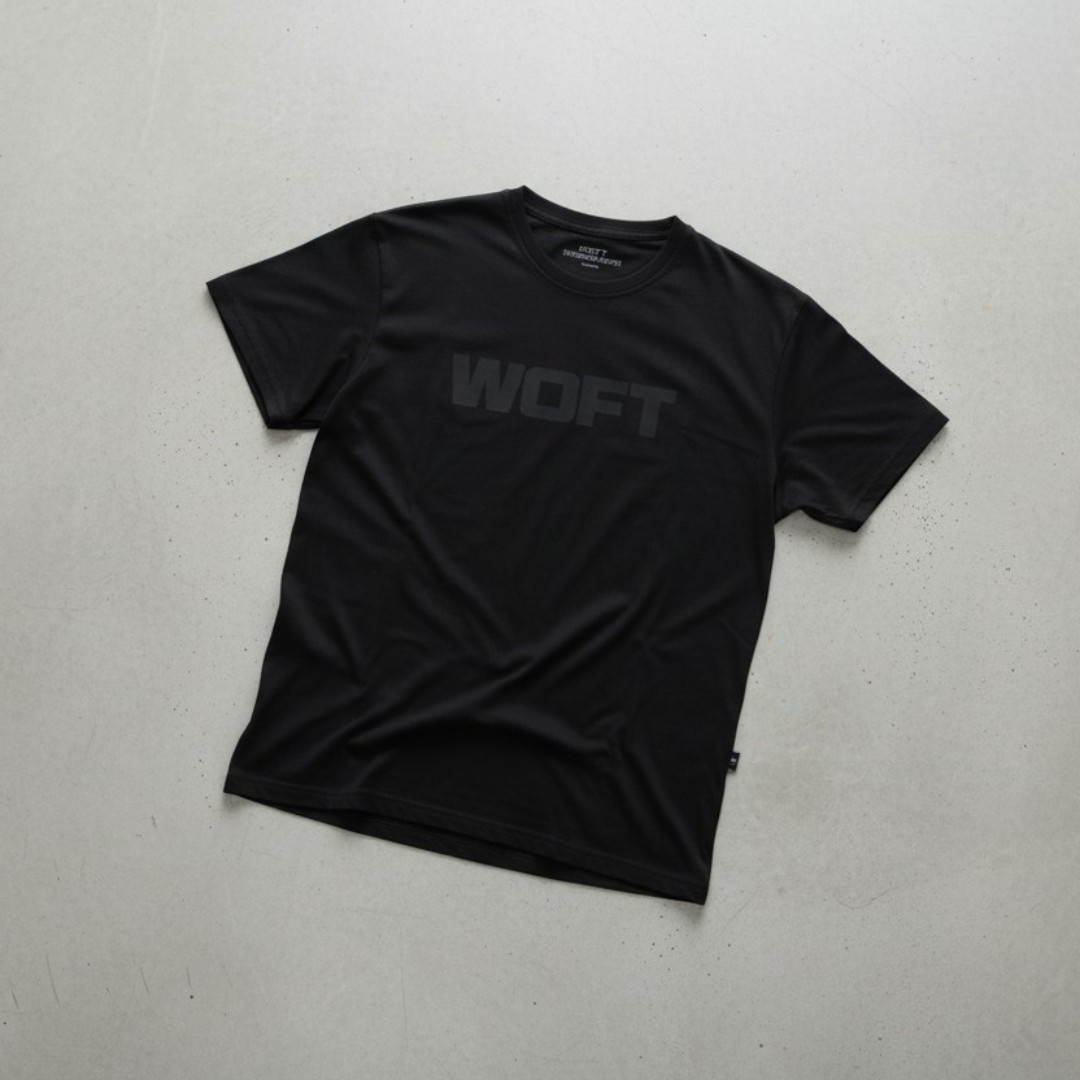 Confeccionada en tejido deportivo ligero y transpirable ofrece libertad total de movimiento. Diseño sobrio, impacto total. Esta camiseta deportiva en tono negro con estampado frontal WOFT en negro.