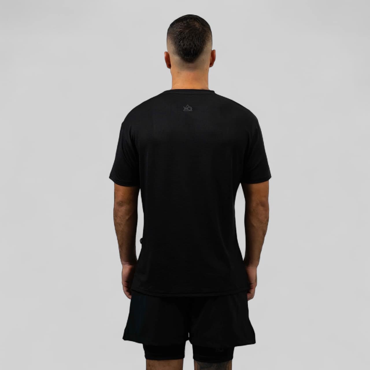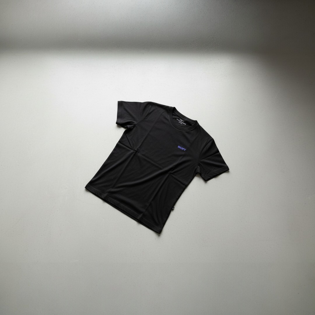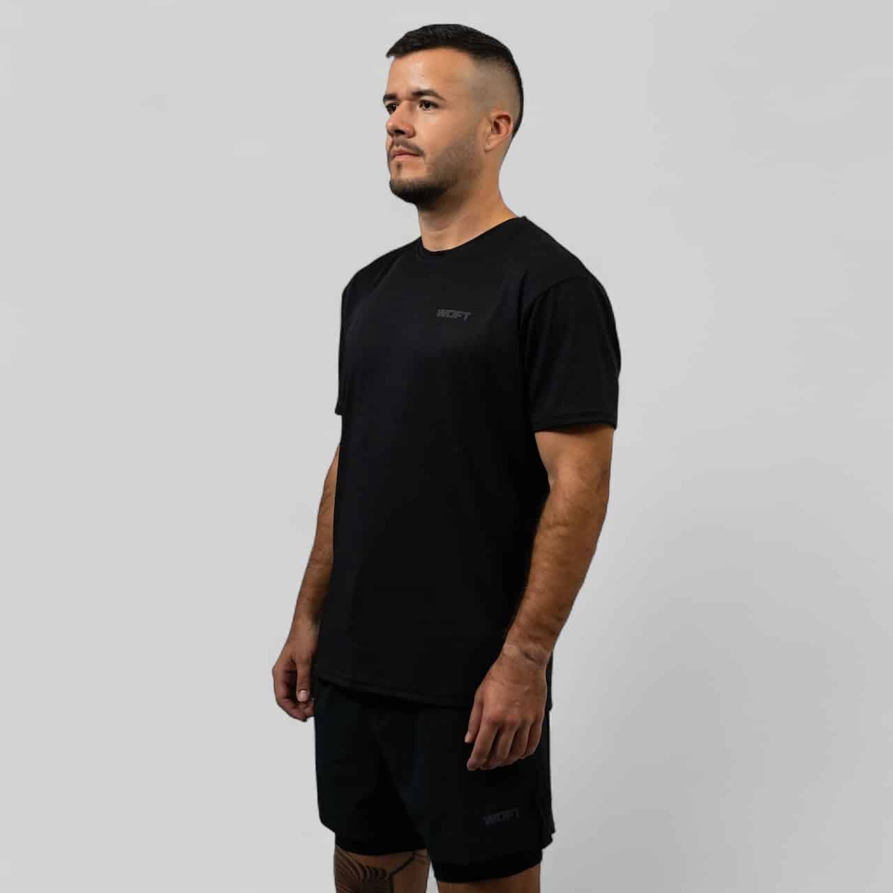 Esta camiseta deportiva en tono negro con estampado frontal WOFT en tornasol en la parte del corazón. Fabricada en tela técnica de alto rendimiento, ofrece frescura, ligereza y libertad de movimiento.