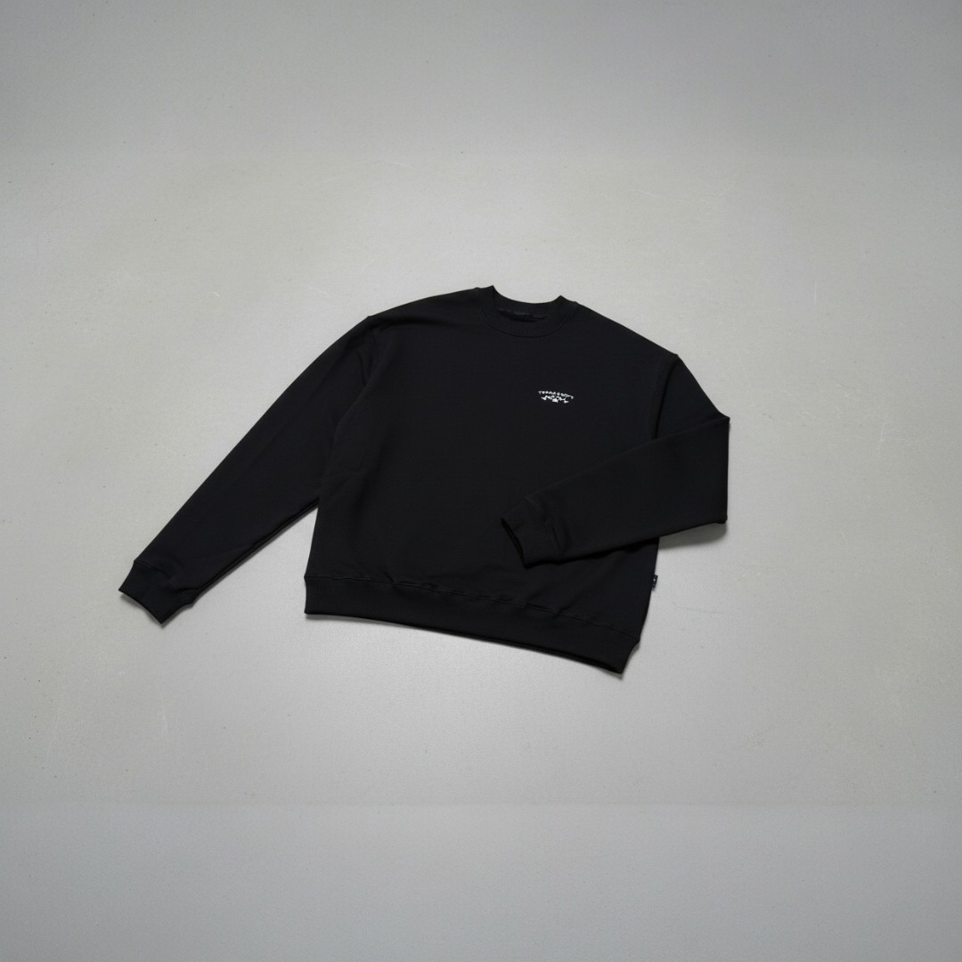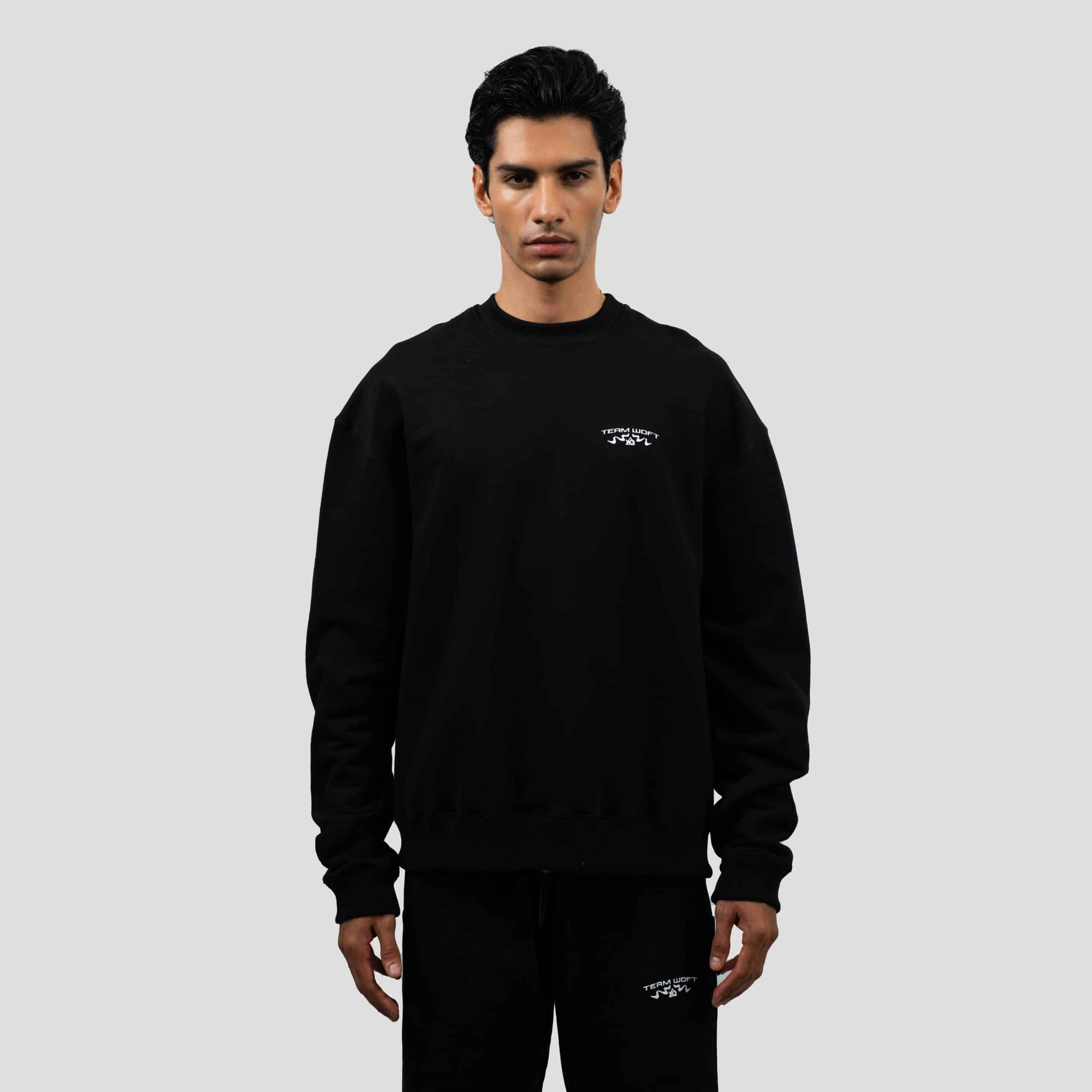 Crewneck negro con sello gráfico “TEAM WOFT” al frente. Corte clásico, tacto suave y una actitud que combina lo urbano con lo esencial.