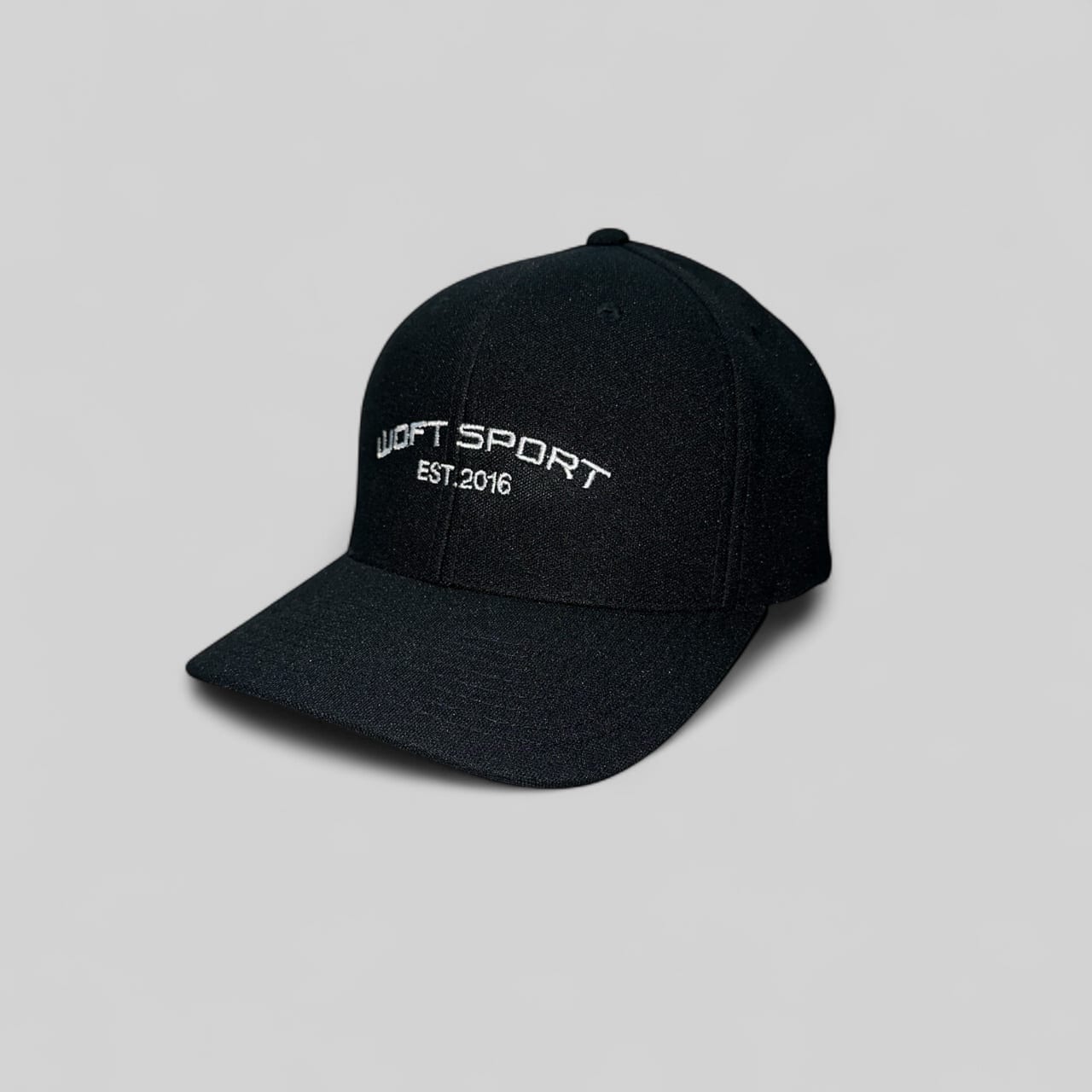 Bordado frontal WOFT SPORT EST.2016 en contraste blanco.