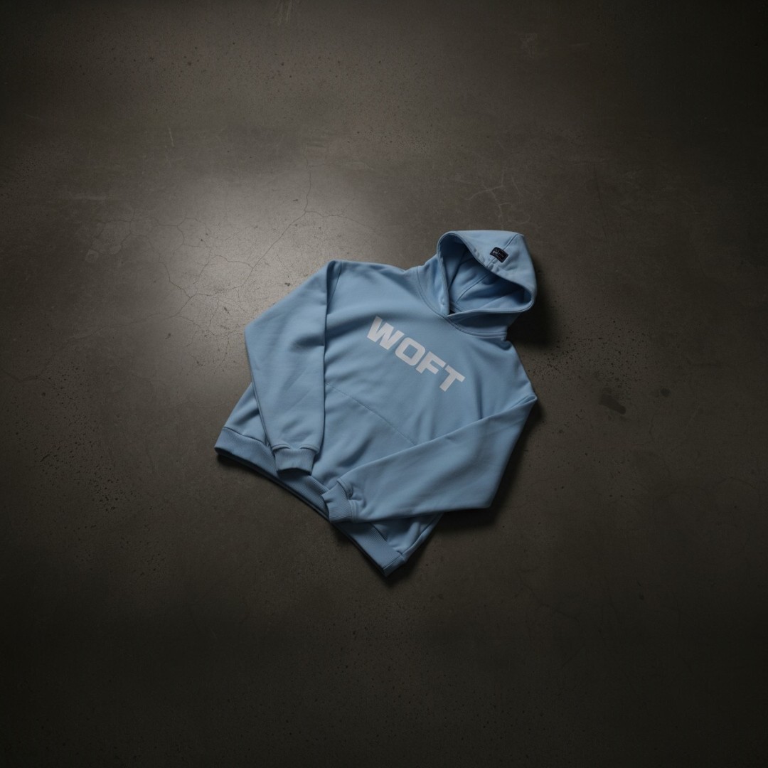 Este hoodie presenta un azul cielo suave que contrasta con el logo WOFT en blanco, creando un look fresco, moderno y equilibrado. Diseñado para quienes viven el arte en movimiento, combina comodidad premium, tacto suave y una silueta relajada perfecta para el día a día.