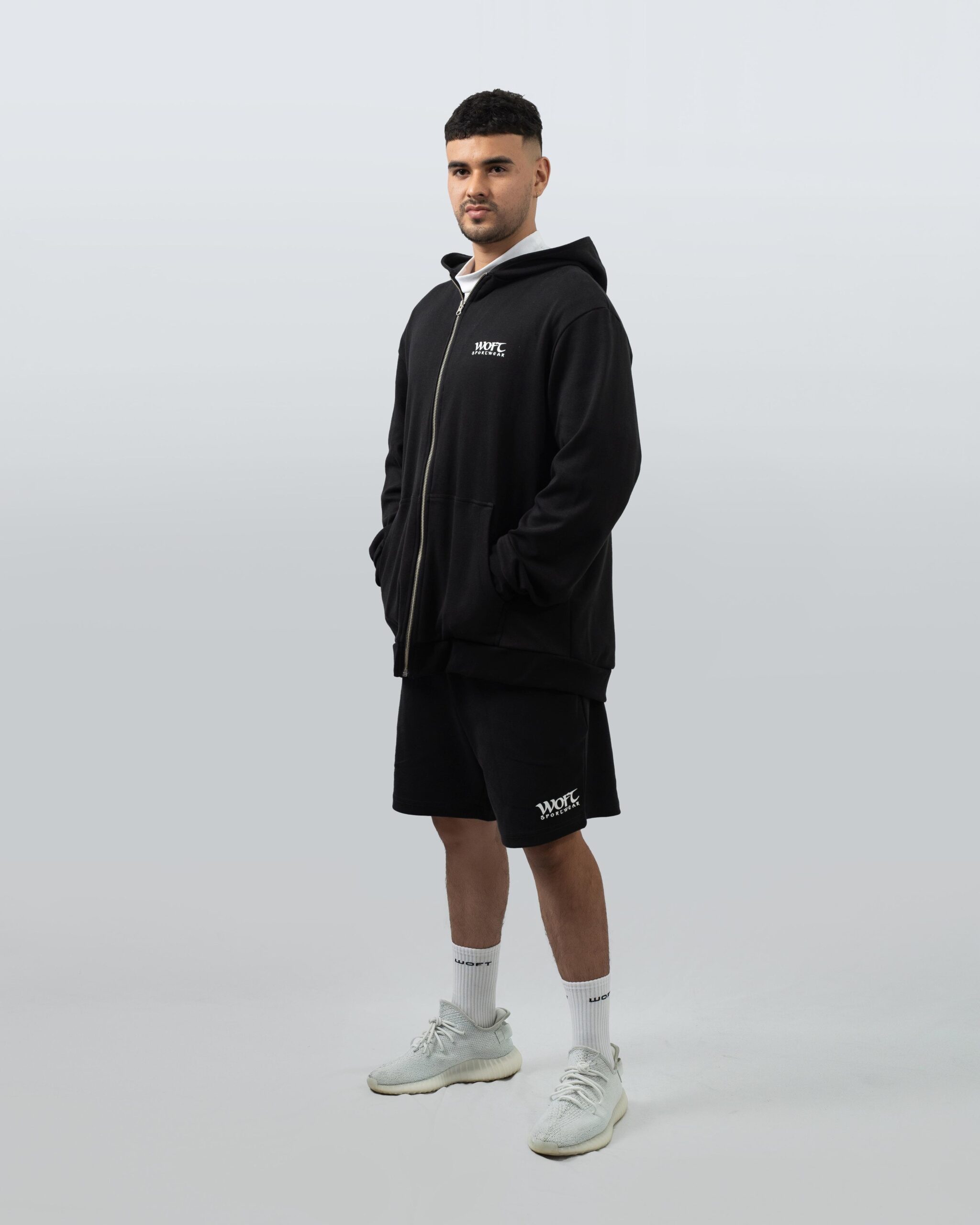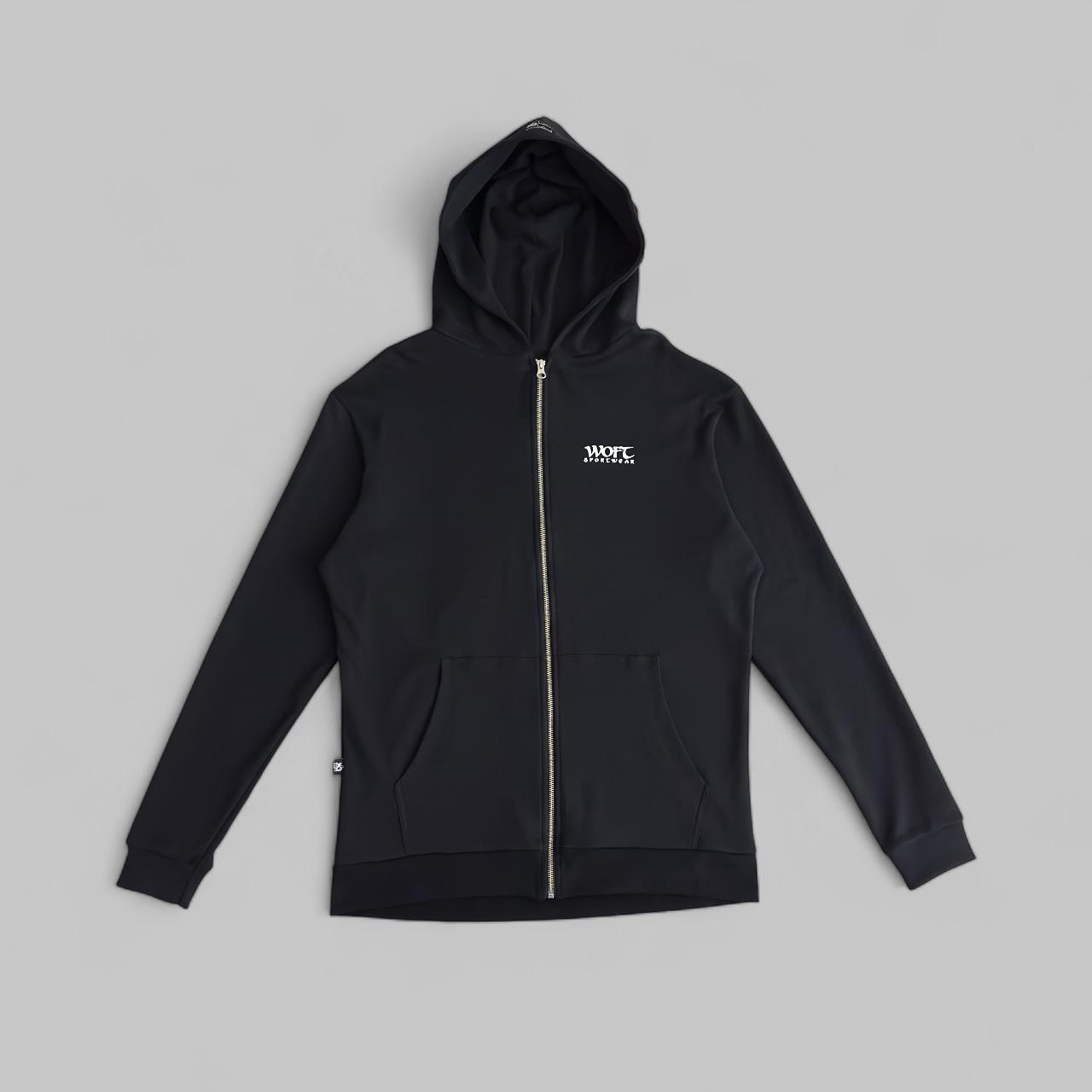 Su diseño full black con cierre frontal metálico, capota estructurada y bolsillos tipo canguro lo convierten en un básico infaltable para quienes prefieren lo funcional sin perder el estilo.