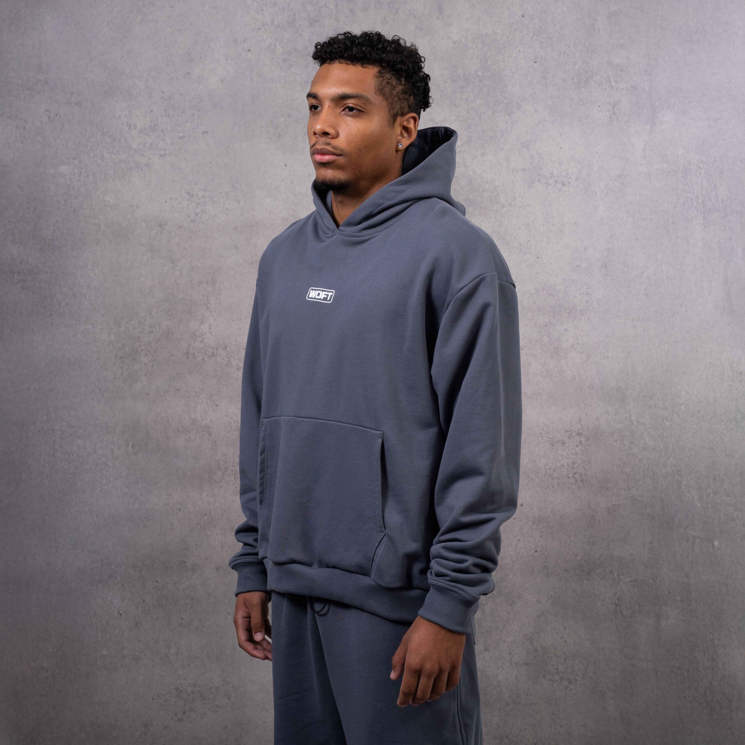Este hoodie en tono gris grafito combina un look limpio con un detalle minimalista: el logo WOFT centrado en formato micro-badge, aportando una estética moderna y discreta. Su tela suave y su fit relajado lo convierten en una pieza esencial para el día a día, con vibra street y actitud creativa.