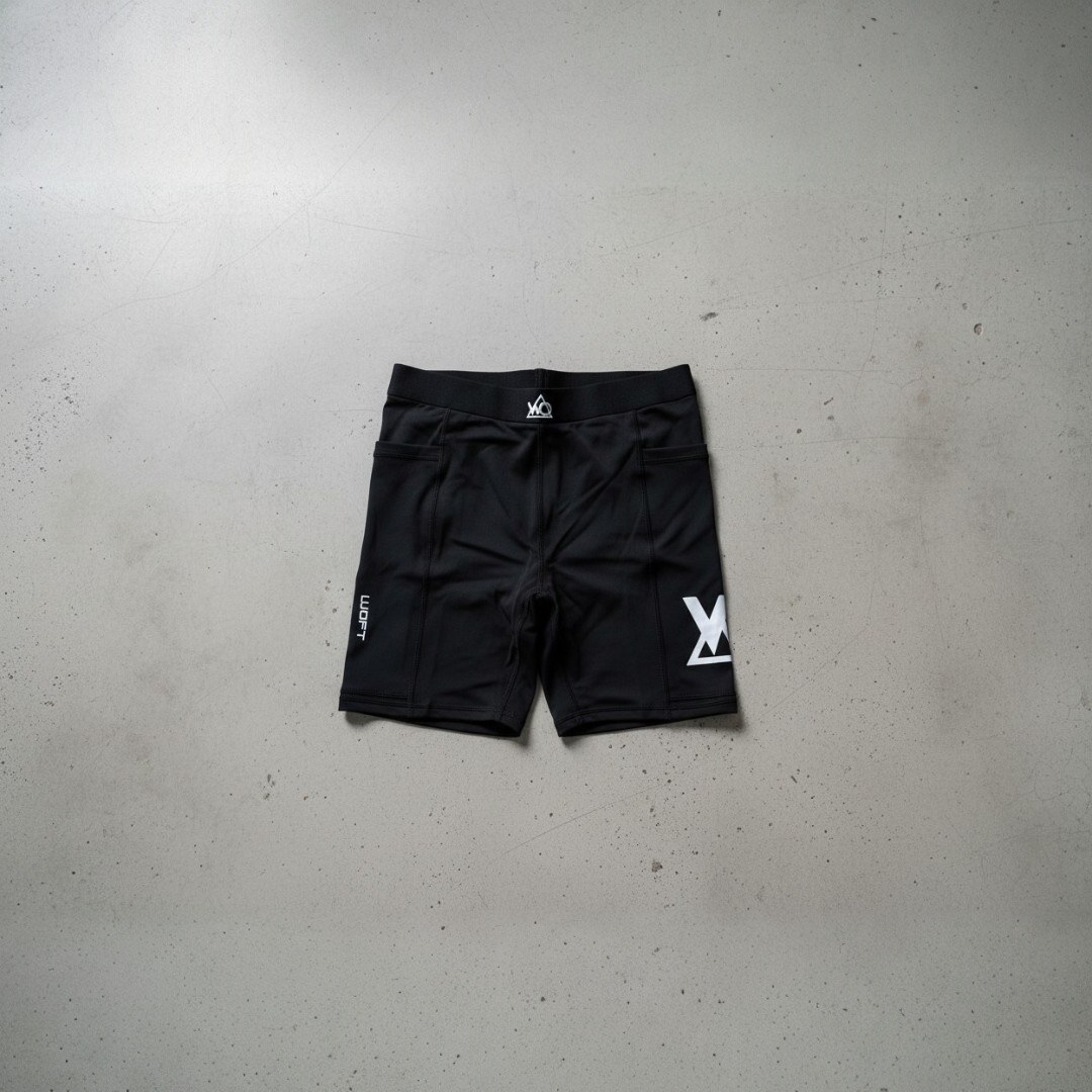 Lycra corta de alto rendimiento en color negro con detalles gráficos en color blanco. Con bolsillos laterales funcionales, pretina reforzada y ajuste compresivo medio que brinda soporte sin limitar el movimiento