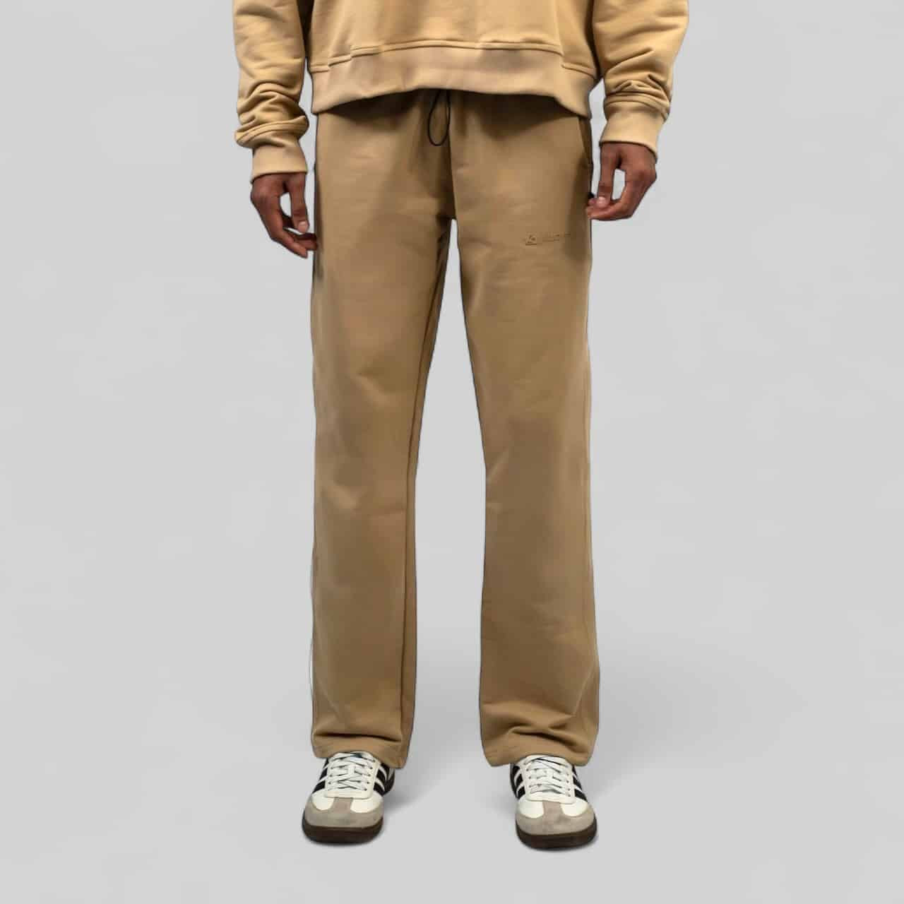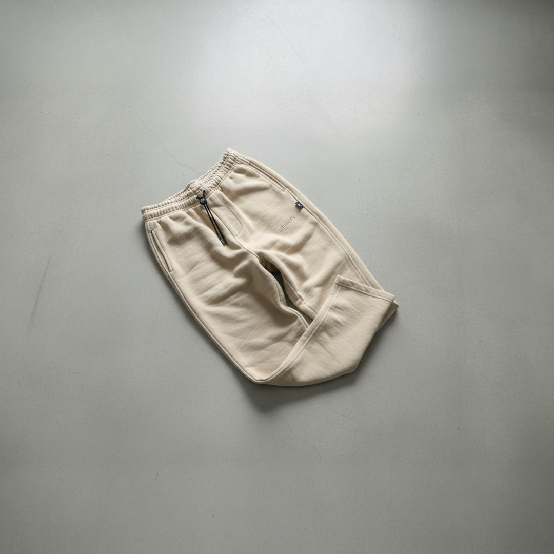 Pantalón tipo sudadera de corte ancho en tono beige claro. Confeccionado con un excepcional algodón de 365 gramos, ofrece una caída fluida y una suavidad inigualable que perdura. Su diseño minimalista y corte amplio redefinen la comodidad sin sacrificar la sofisticación.