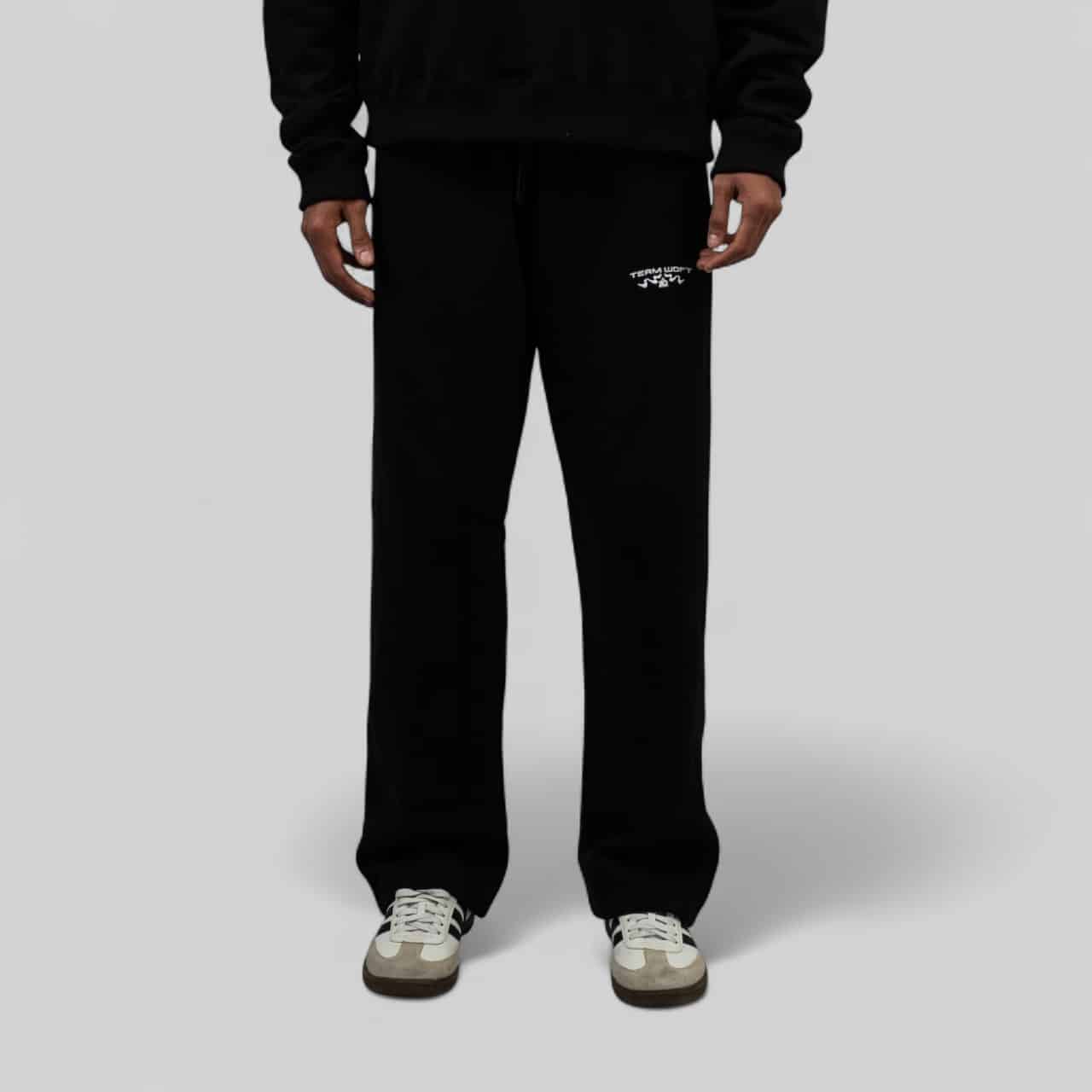 Pantalón tipo sudadera de corte ancho en tono negro . Confeccionado con un excepcional algodón de 365 gramos, ofrece una caída fluida y una suavidad inigualable que perdura. Su diseño minimalista y corte amplio redefinen la comodidad sin sacrificar la sofisticación.